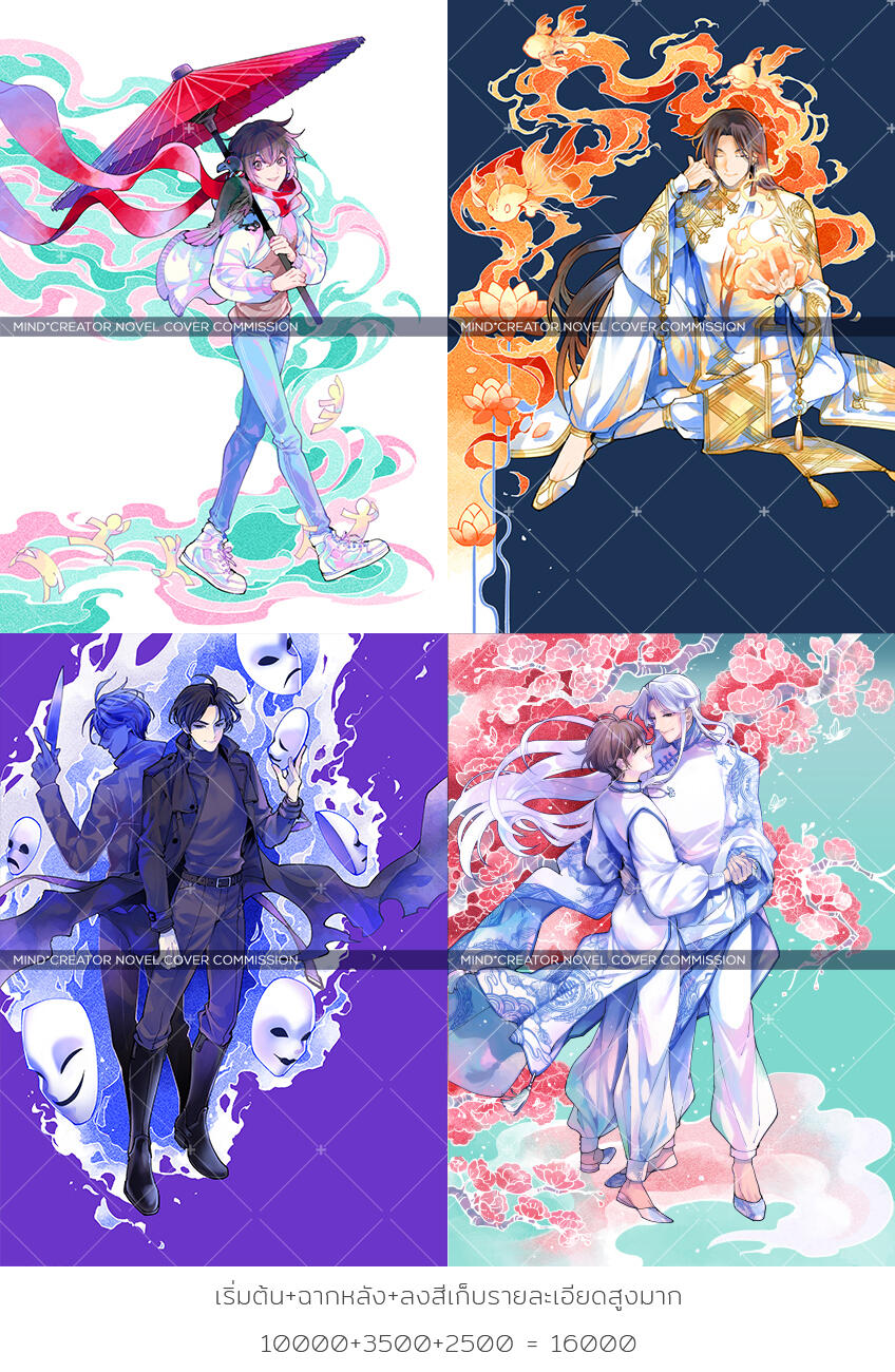 • รายละเอียดFormatงาน เช่น ภาพปกนิยายขนาด สันกว้าง 1.50 ซม. A5 ความละเอียด 300 dpi เป็นต้น